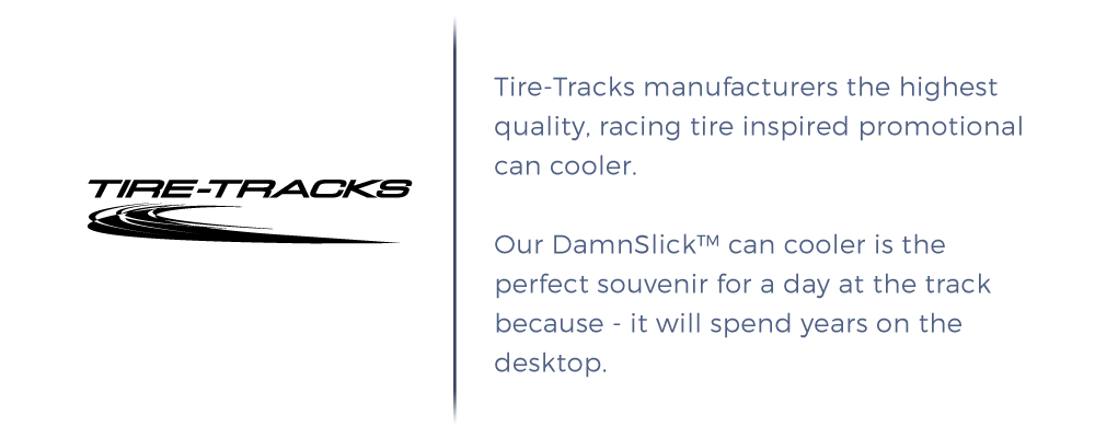 Tire-Tracks Tire-Tracks manufacturers the World's first Racing Tire Can Cooler. Made from real racing rubber with meticulous attention to detail, DamnSlick® is sold at the most prestigious racing venues in North America and Europe.